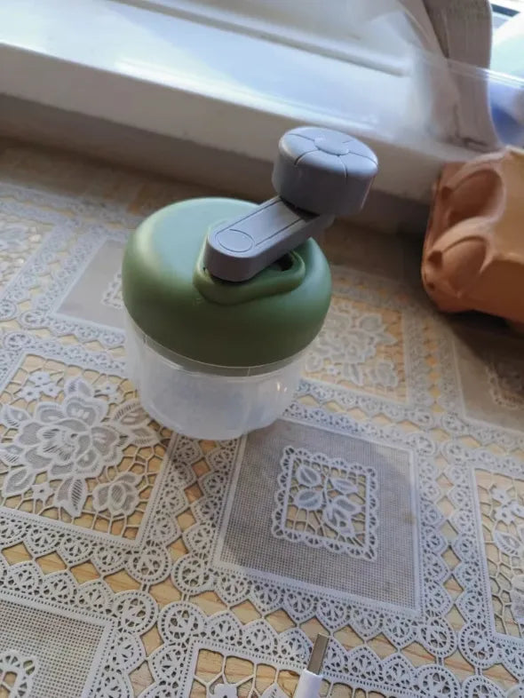 "OMG, this chopper is a game changer in my kitchen! Love how it minces garlic super fine and quickly. The hand-crank is easy to use, and its compact size is perfect for my small kitchen. It's now my go-to gadget every time I cook. Totally recommend to all busy home chefs!😊❤️"